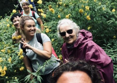 Sotto un cielo plumbeo ma ricco di sfumature cangianti siamo partite alla scoperta dei sentieri e delle meraviglie nei dintorni di Enemonzo e Socchieve. Ci siamo fatte guidare dal selciato di antiche mulattiere e dalle stradine dei villaggi per raggiungere piccole chiesette panoramiche, per attraversare boschi dorati punteggiati da fioriture affascinanti (pur se non consone al nostro ambiente!), abbiamo attraversato guadi e annusato il profumo della terra bagnata nel bosco. Abbiamo lasciato che la leggera pioggerellina scivolasse sulle nostre giacche antipioggia e ci facesse ricordare quanto preziosa sia come dono della Natura.