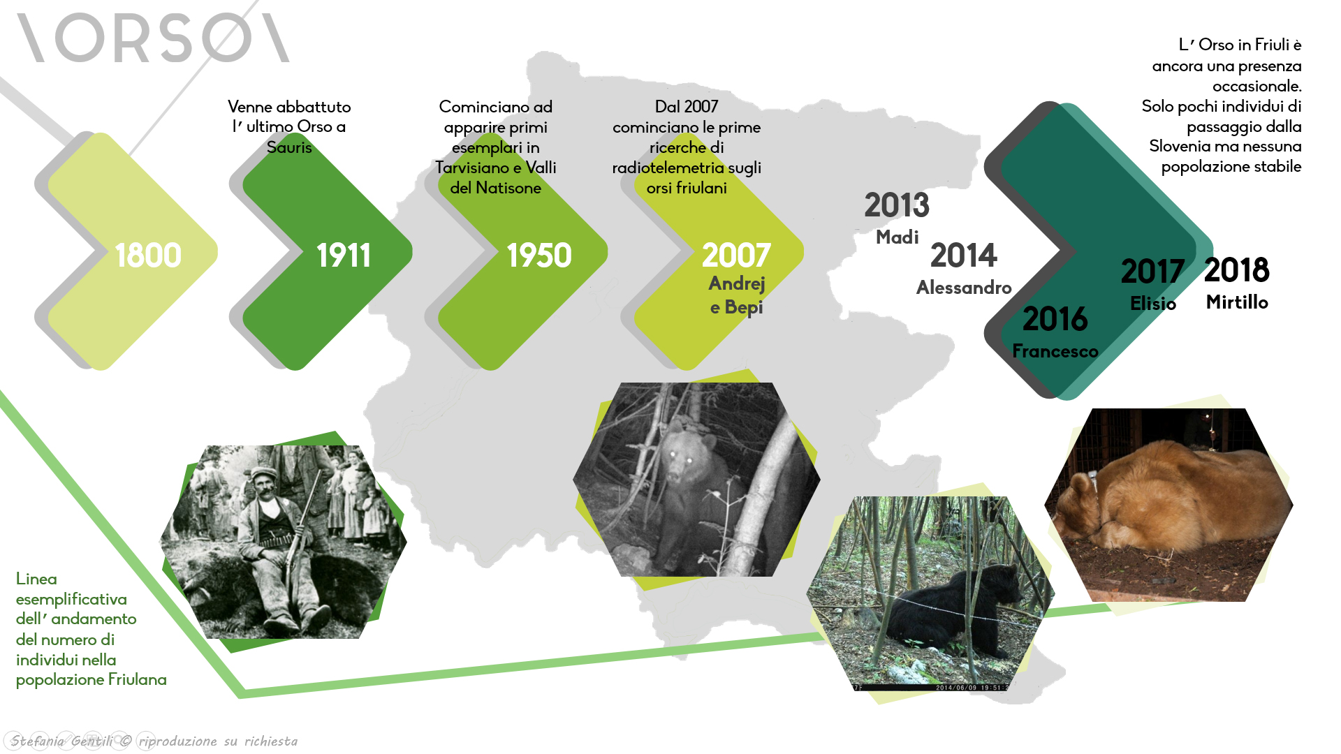 Il punto di non ritorno, infatti, stava per essere sfiorato: da quando, alla fine dell'800, animali selvatici di ogni genere, connessi da equilibri ecologici saldi, abitavano tutti gli ambienti naturali comprese le nostre splendide montagne, al momento in cui tutte le specie di grandi carnivori, di uccelli predatori e di spazzini del cielo, ma anche di ungulati alpini, di mustelidi e.. (forse è meglio che mi fermo perché l'elenco è tristemente lungo...) si sono ritrovati quasi sull'orlo dell'estinzione, con pochissimi esemplari a difendere la sopravvivenza della specie, il passo è stato veramente breve.